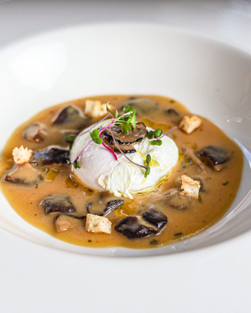 A experiência tem início com o Crudo di Mare, uma entrada leve com lâminas de filé de peixe branco e salmão, finalizadas com azeite extravirgem e ovas de peixe. A segunda etapa apresenta o Poché Funghi e Tartufo, que reúne ovo pochê, molho de cogumelos frescos, croutons e lascas de trufa negra.